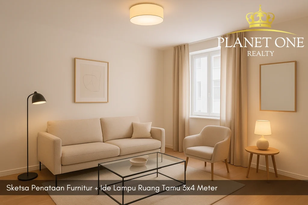 Untuk membuat ide lebih konkret, mari kita bayangkan ruang tamu berukuran 3 m × 4 m. Bagaimana cara menerapkan tips di atas?
