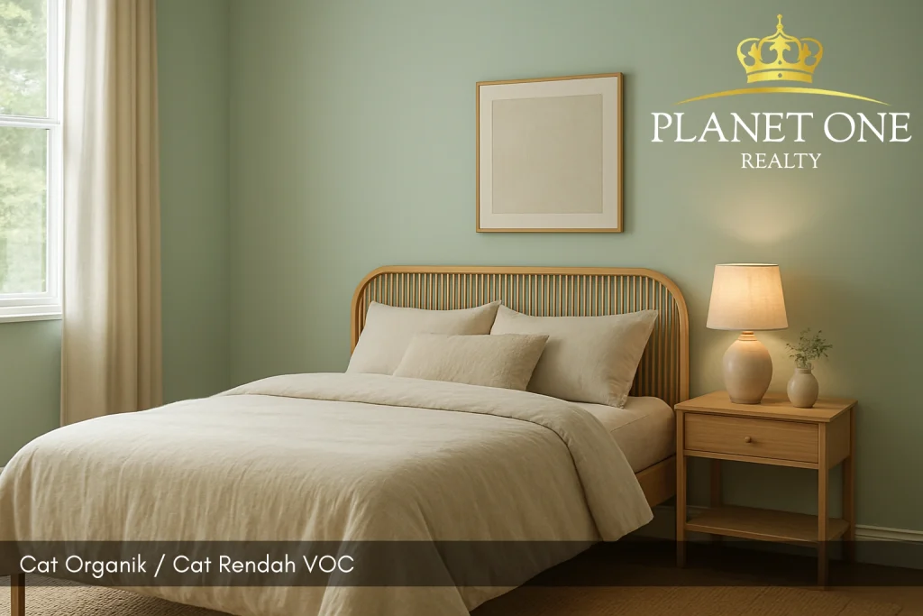 Salah satu bagian yang sering dilupakan saat memilih interior “ramah lingkungan” adalah cat dan pelapis (coating). Banyak cat biasa mengandung VOC (Volatile Organic Compounds) atau zat kimia berbahaya yang dapat menguap ke udara dalam ruangan (off-gassing).
