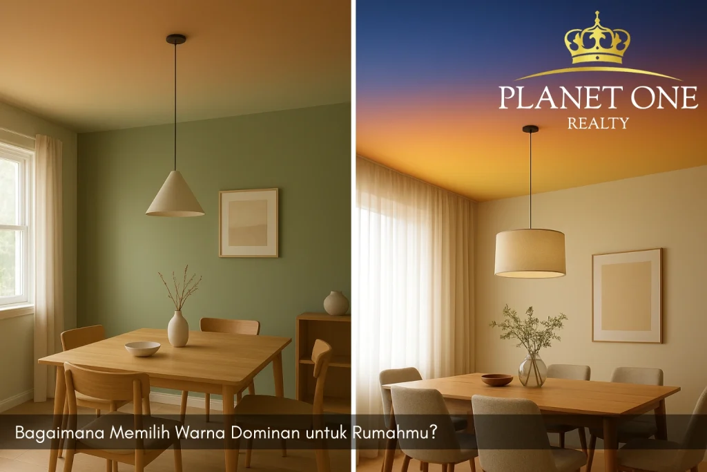 Warna dominan bukan berarti harus mendominasi semua permukaan – melainkan warna “utama” yang menjadi benang merah estetika rumahmu. Berikut faktor-faktor yang perlu diperhatikan: